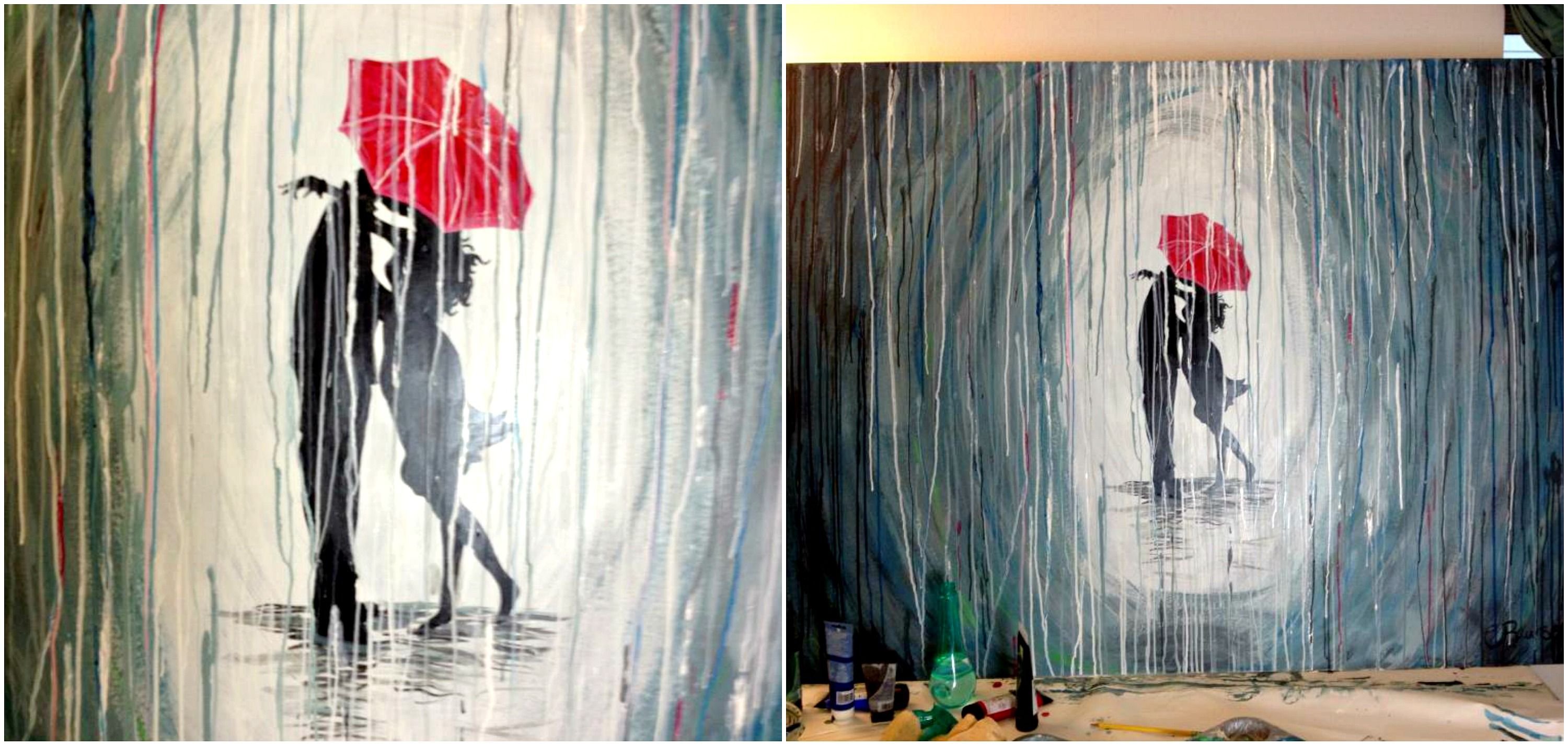 Дождь акриловыми красками