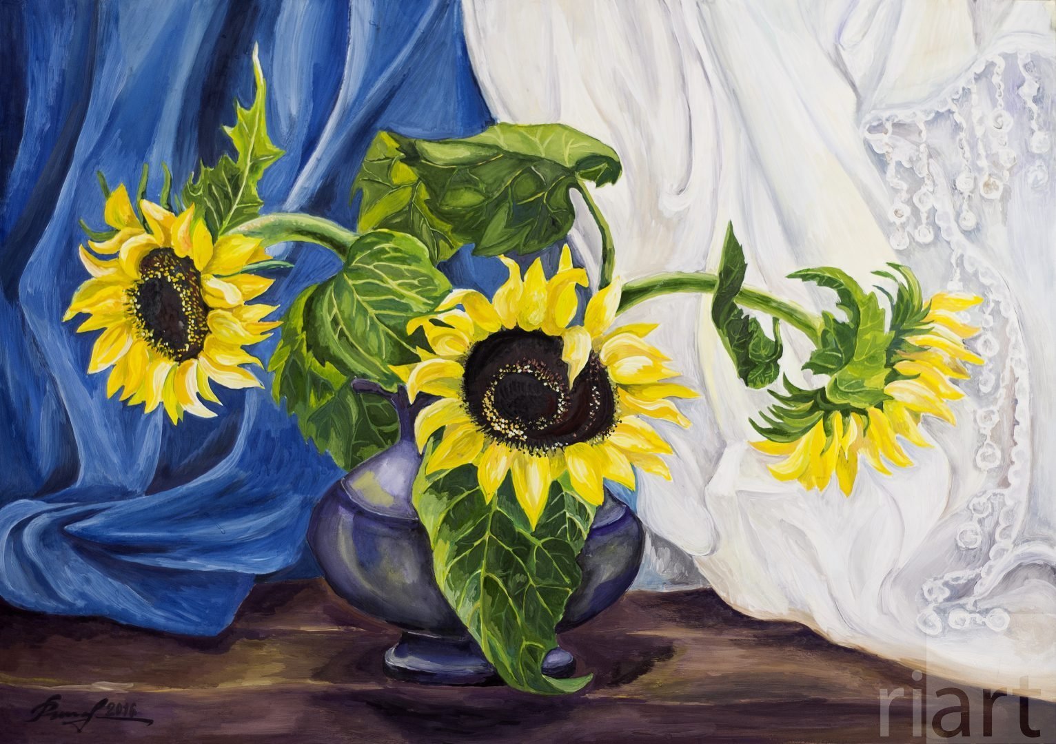 ![Натюрморт с подсолнухами гуашью]()