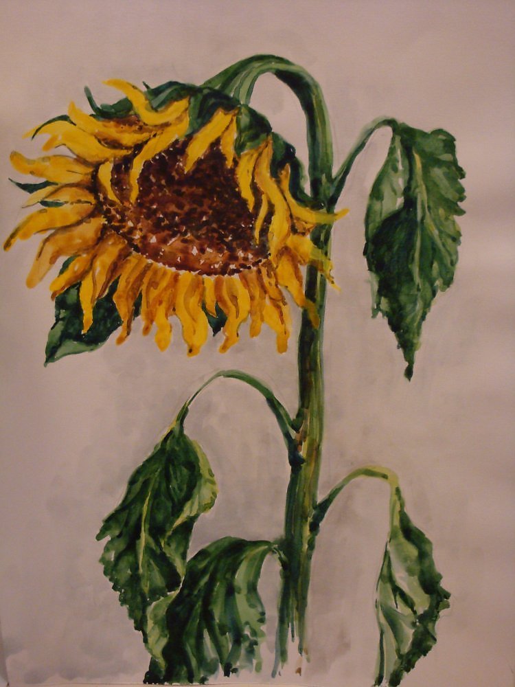 Подсолнух рисунок акварелью