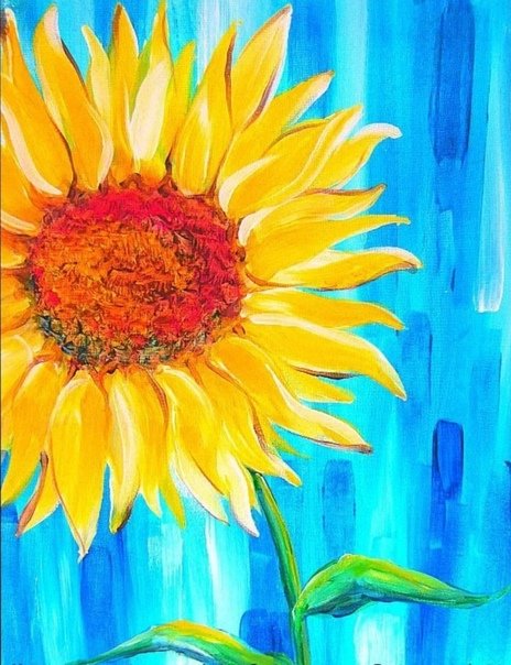 ![Подсолнух акриловыми красками для начинающих]()