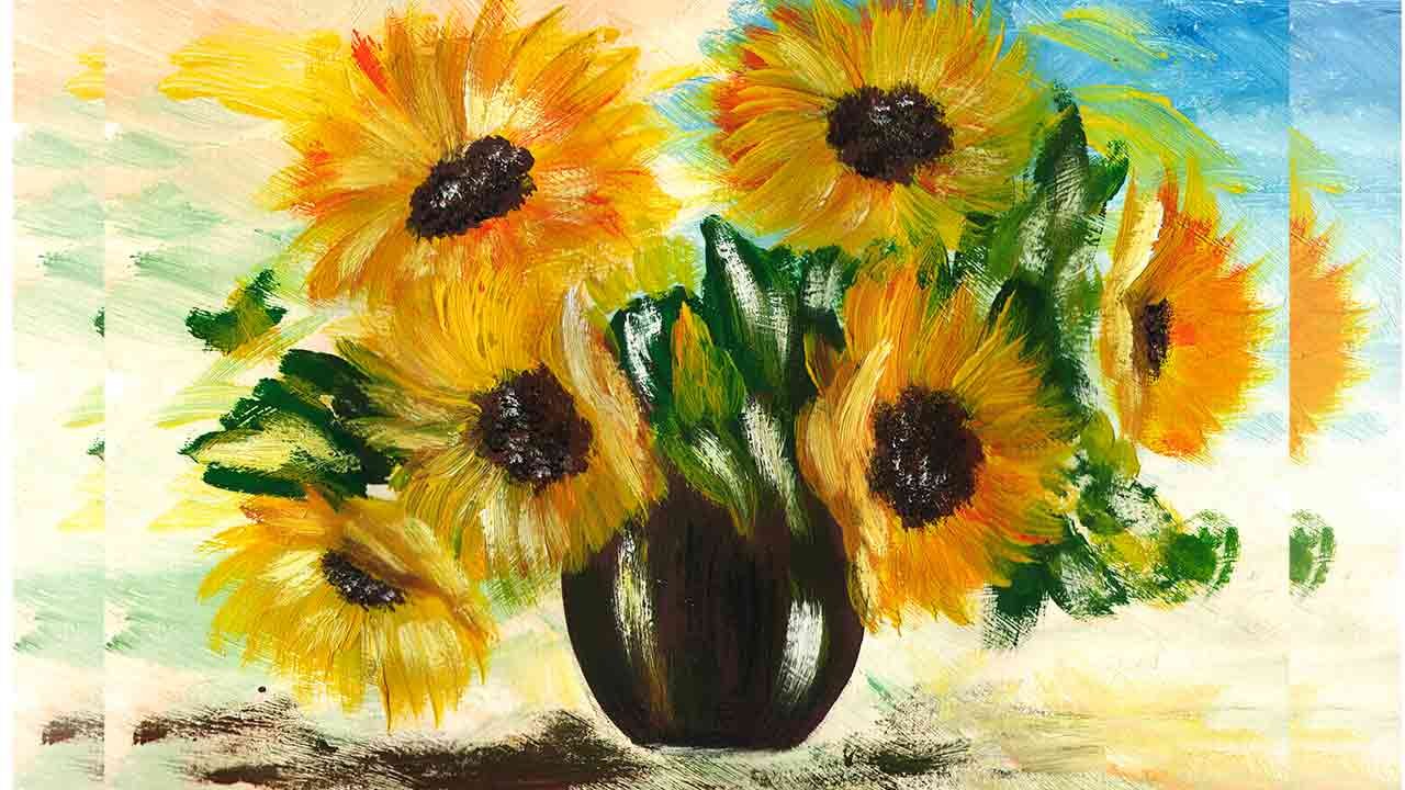 Подсолнух акриловыми красками для начинающих