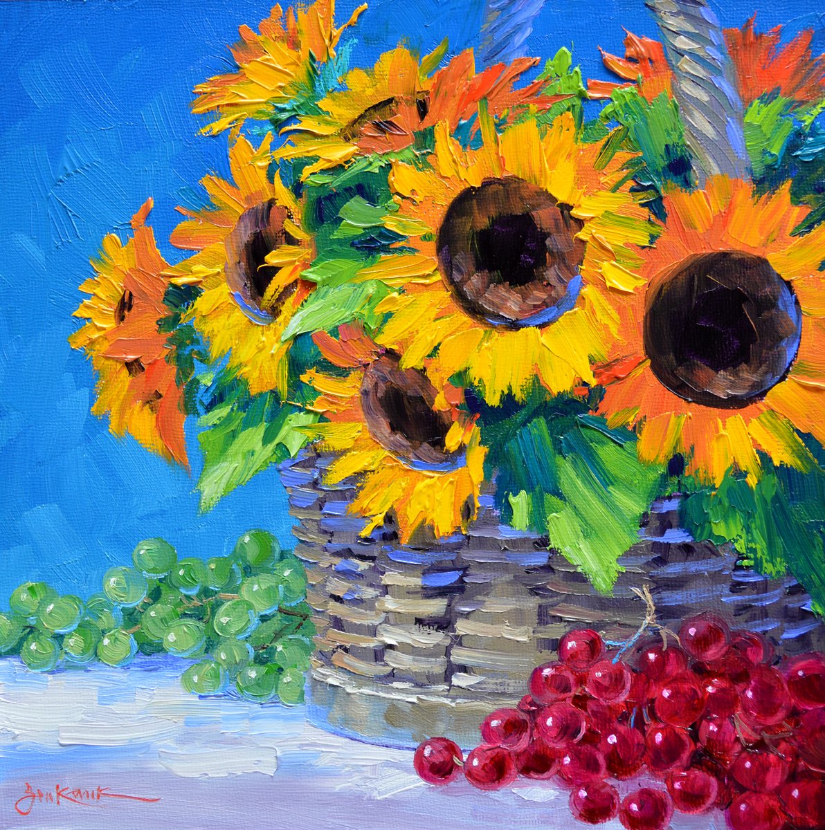 ![Рисуем Подсолнухи маслом]()