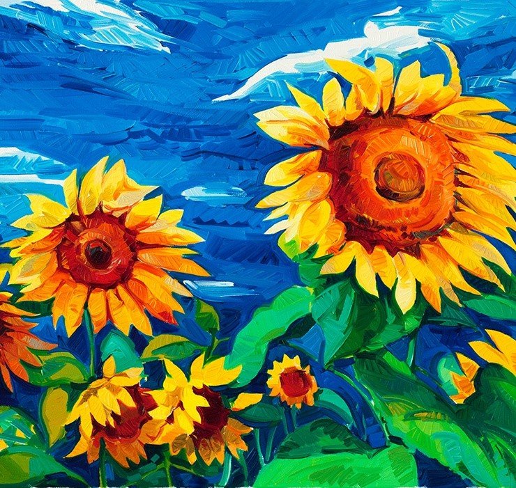 Рисуем Подсолнухи маслом