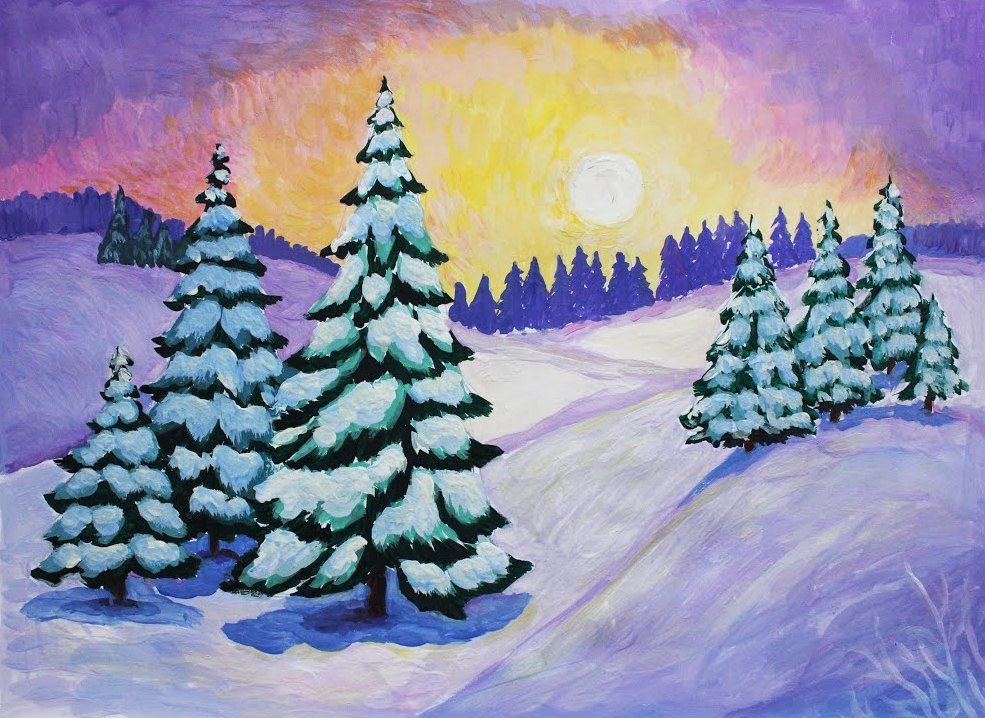 ![Рисование зимний пейзаж]()