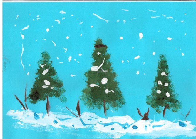 ![Зимняя елка красками]()