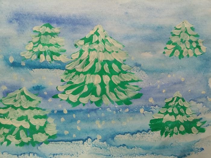 ![Елка в снегу гуашью]()
