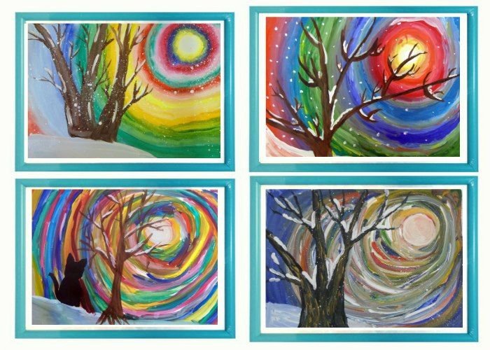 ![Зимние рисунки гуашью]()