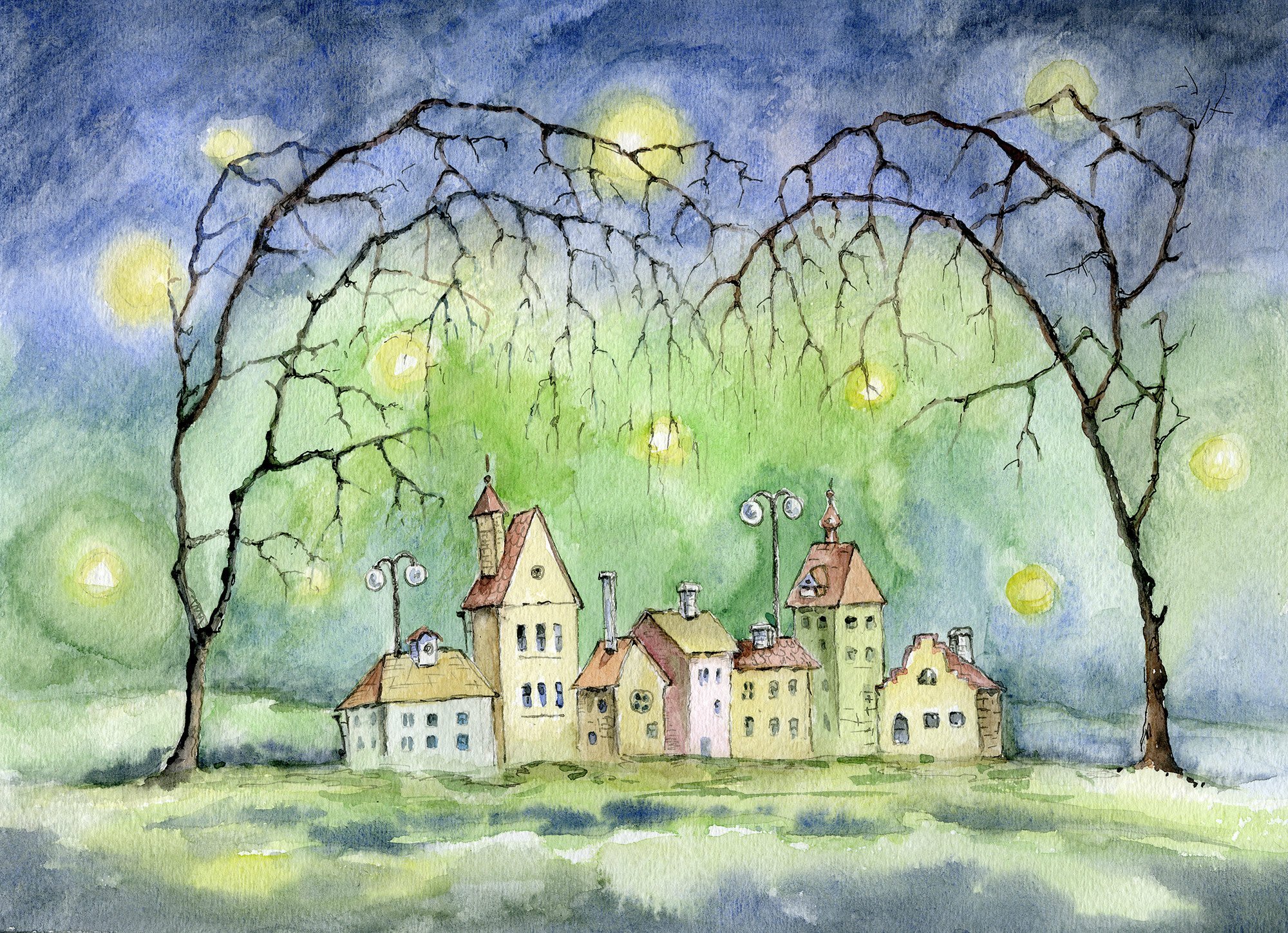 Волшебные домики акварелью