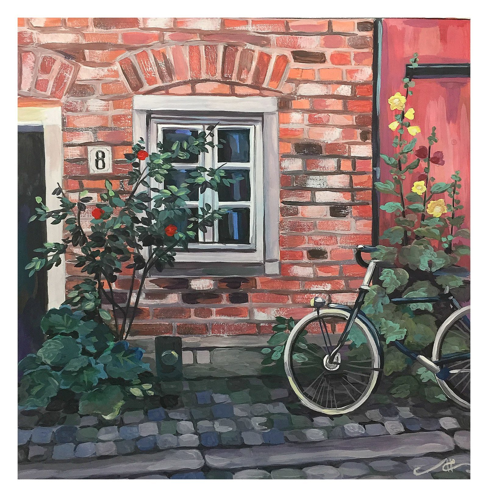 Кирпичный дом акварелью