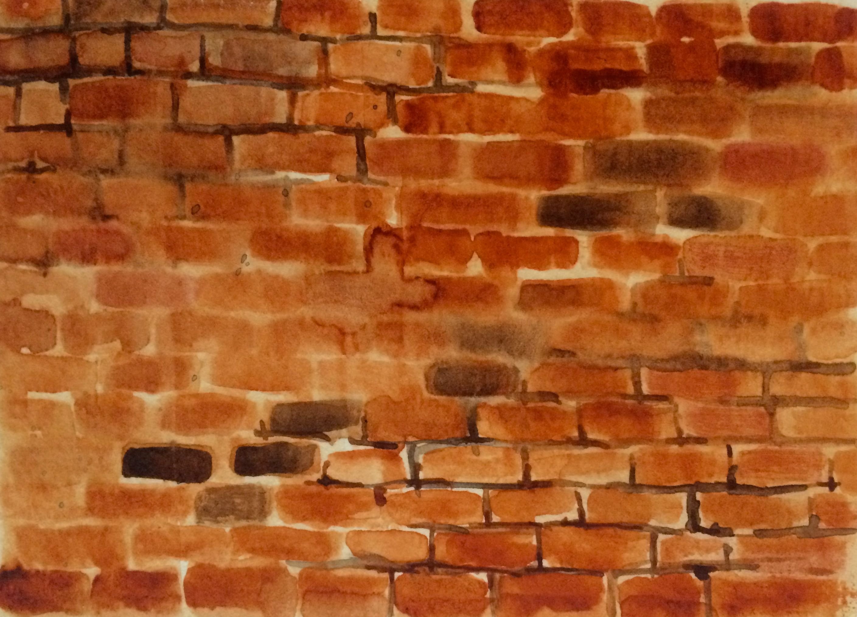 Кирпичная стена акварелью
