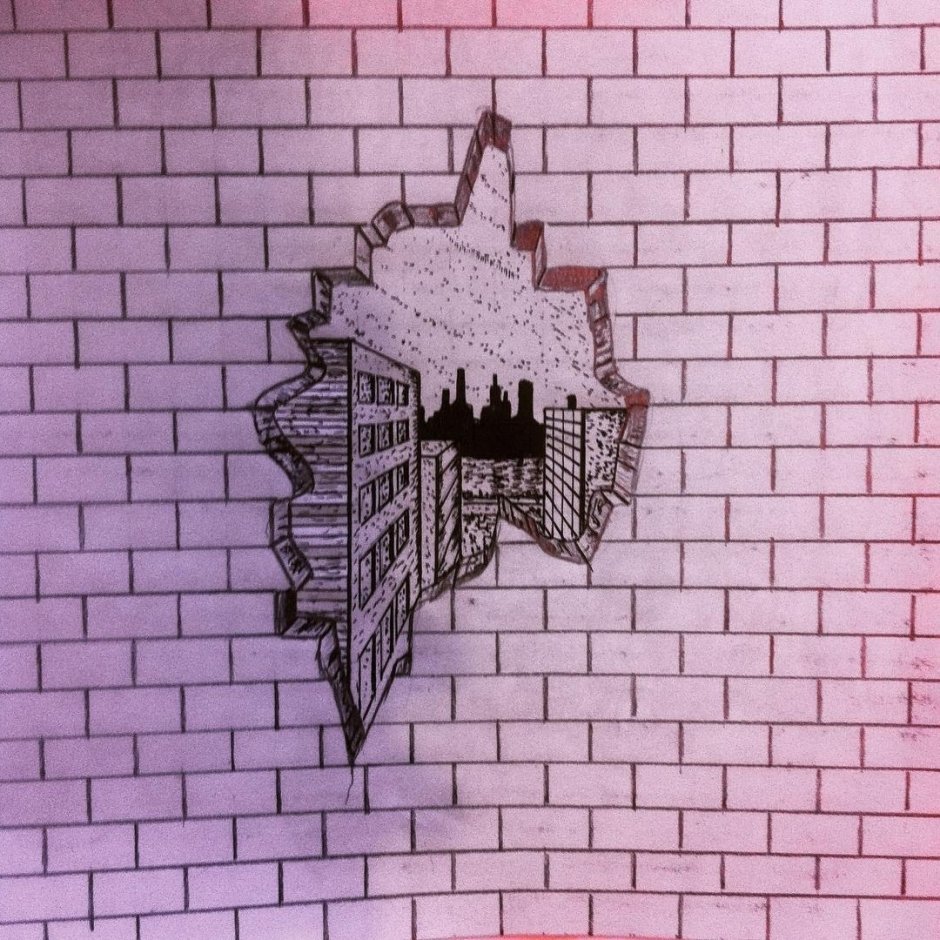 ![Кирпичная стена карандашом]()
