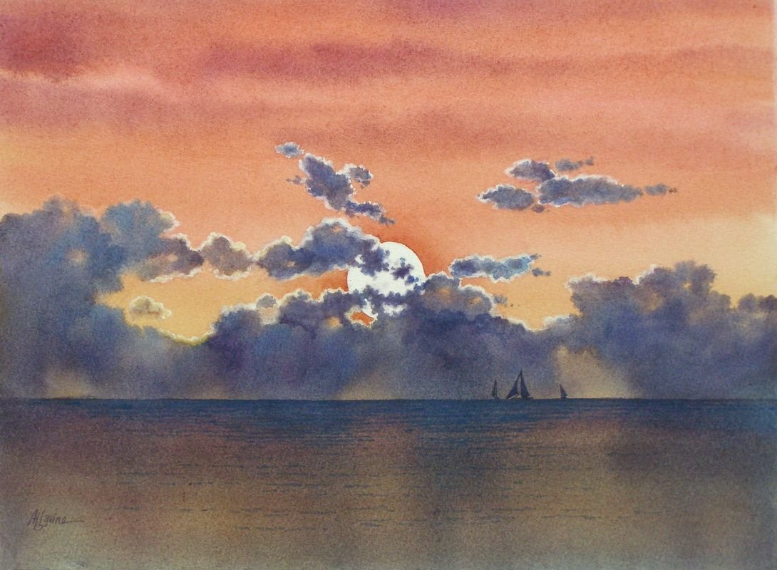 ![Пейзаж с облаками акварелью]()