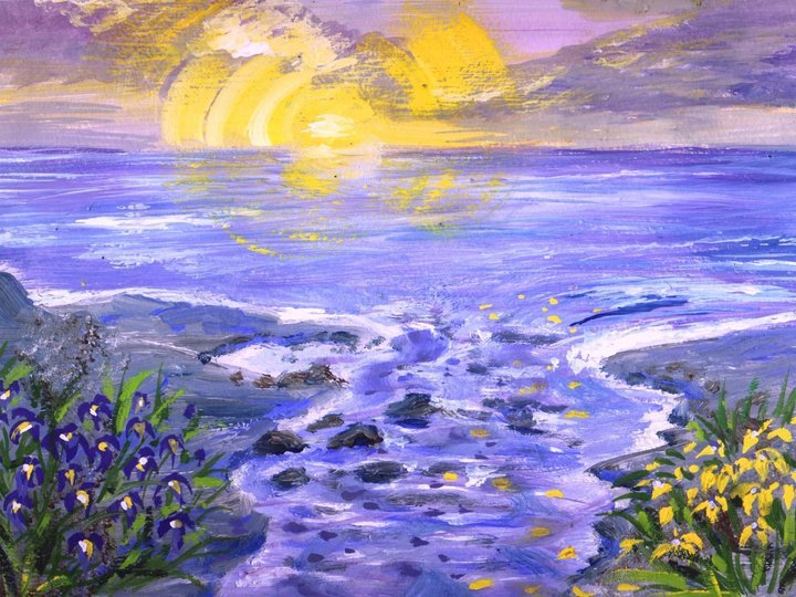 ![Закат гуашью]()