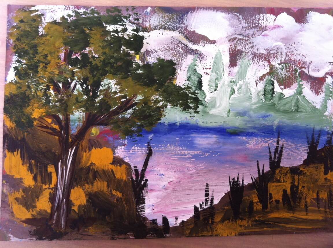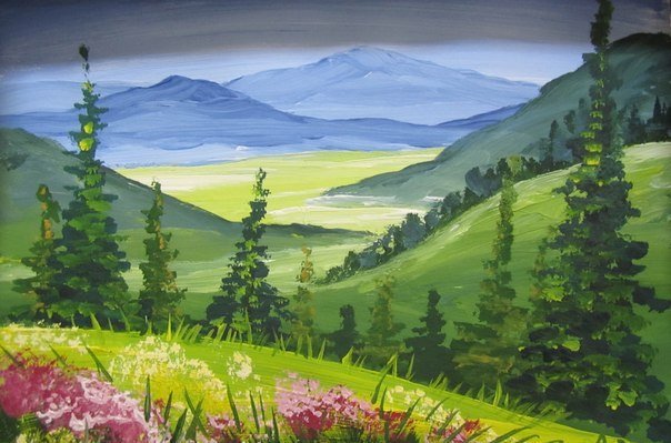 ![Горы правополушарное рисование гуашью]()