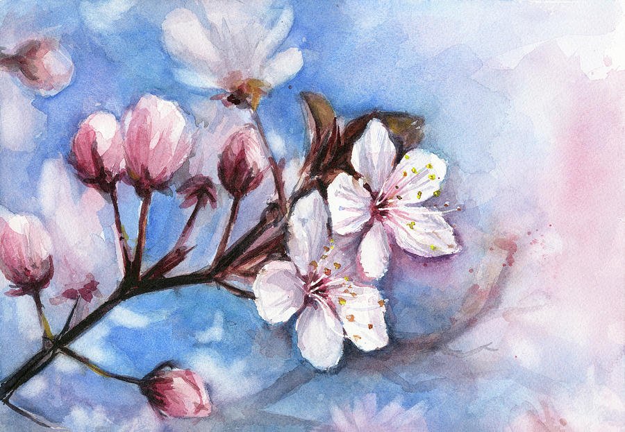 Рисуем с детьми гуашью ветку яблоневого цвета