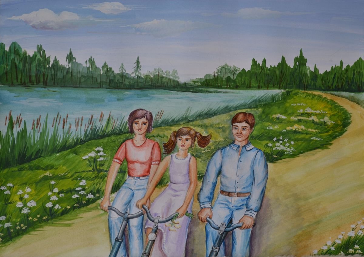 Семья картины гуашью