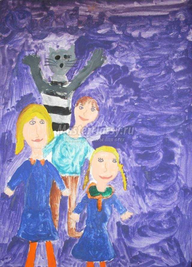 ![Семья рисунок гуашью]()