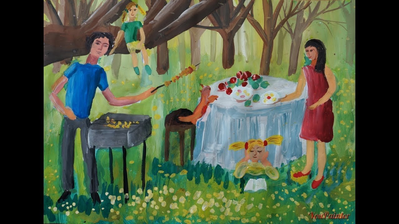 ![Семейный пикник на природе живопись]()