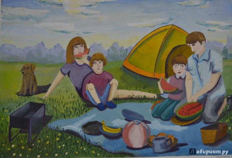 ![Рисунок семья на отдыхе]()