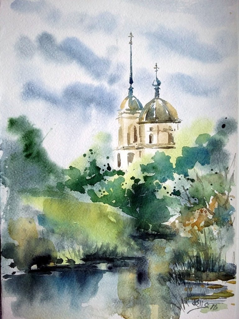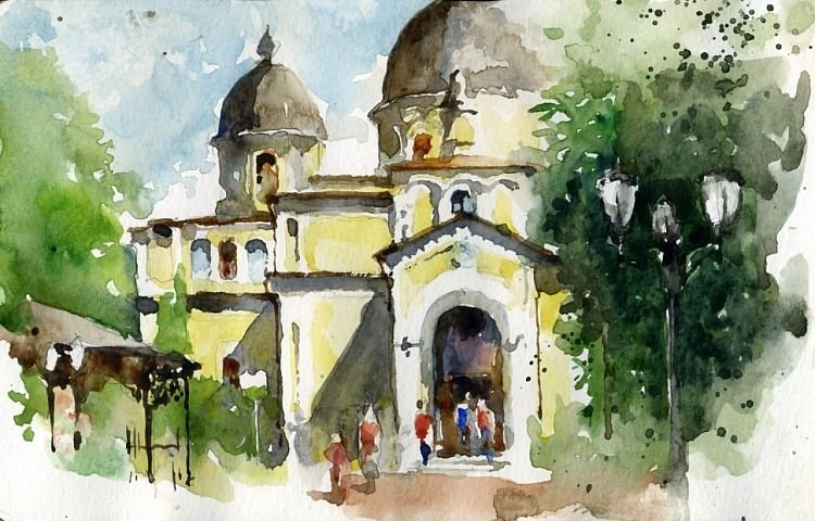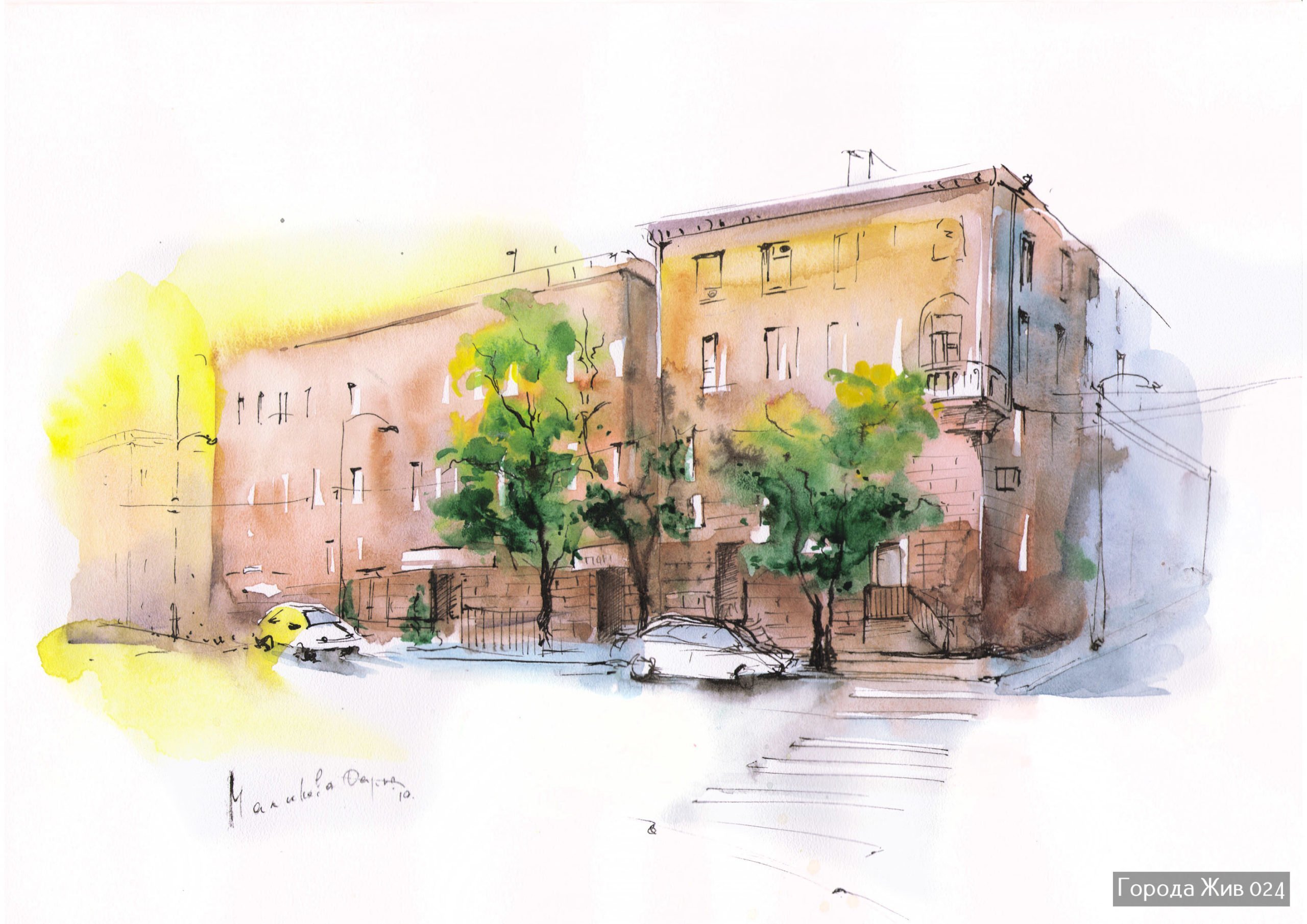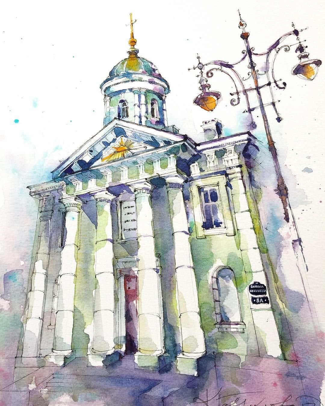 ![Скетч архитектура акварель Кристина Гаврилова]()