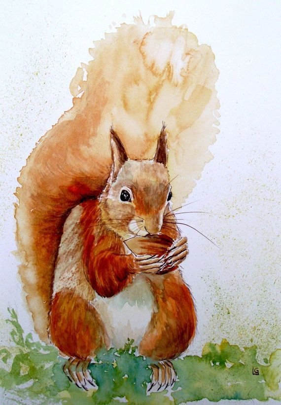 Белка акварелью