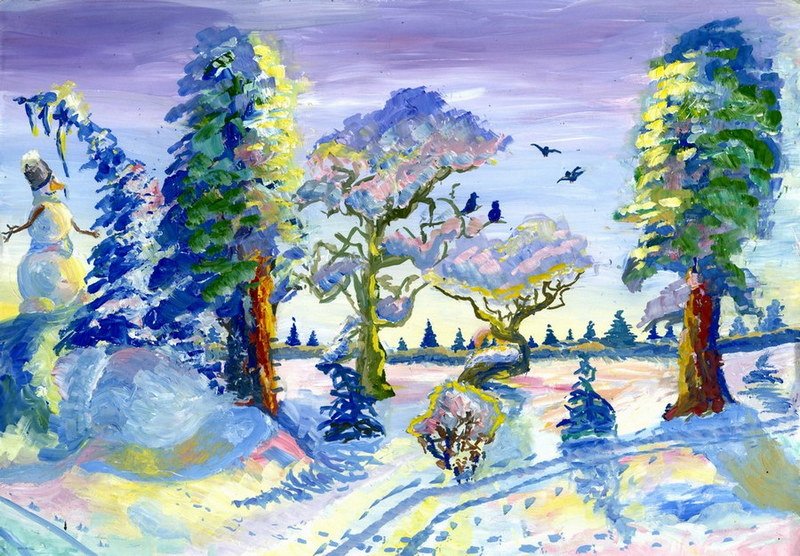 Русская зима - это великолепная тема для изображения, особенно если это делается при помощи гуаши. Густые слои красок создают ощущение снежной пушистости и мерцающих льдинок на ветвях деревьев. Чистый белый цвет смешивается с прохладными оттенками голубого и серого, передавая холодное зимнее настроение. Детали, такие как снежинки плавно падающие с неба или пушистые воротники шуб, добавляют эффект реализма и создают атмосферу сказочной зимы. Рисунок русской зимы гуашью - это настоящее произведение искусства, которое заставляет почувствовать всю прелесть и красоту зимнего времени года.