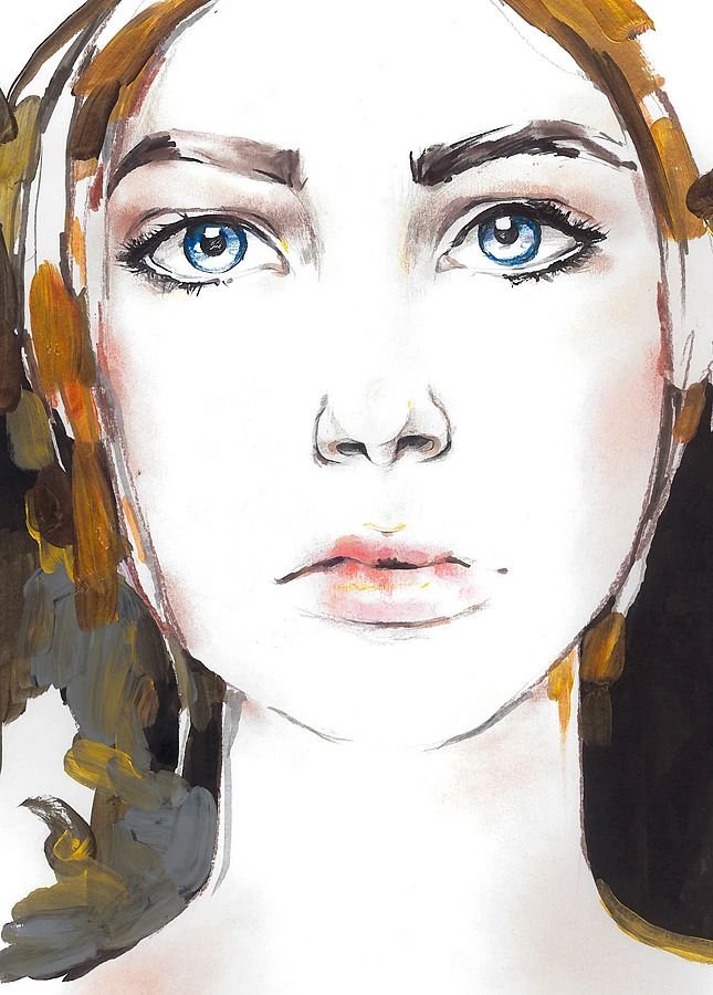 ![Лицо девушки акварелью]()