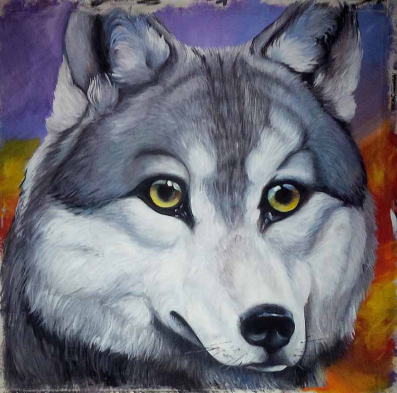 Волк гуашью