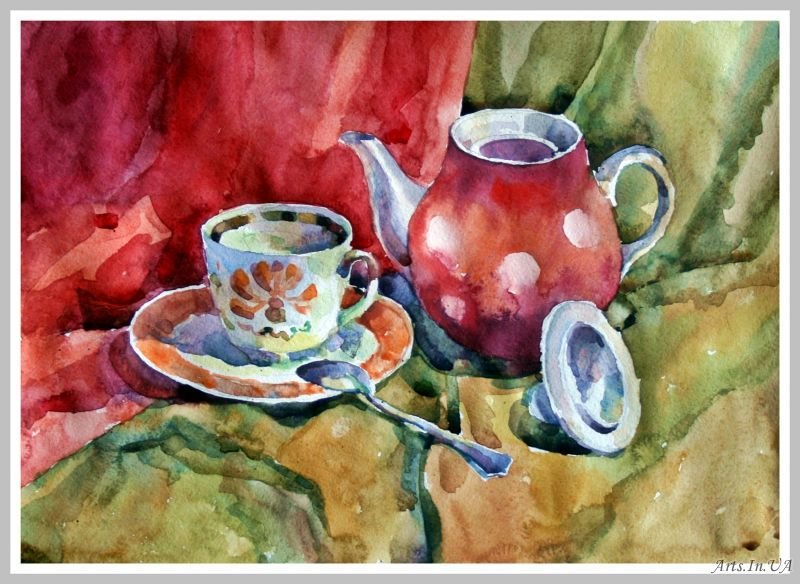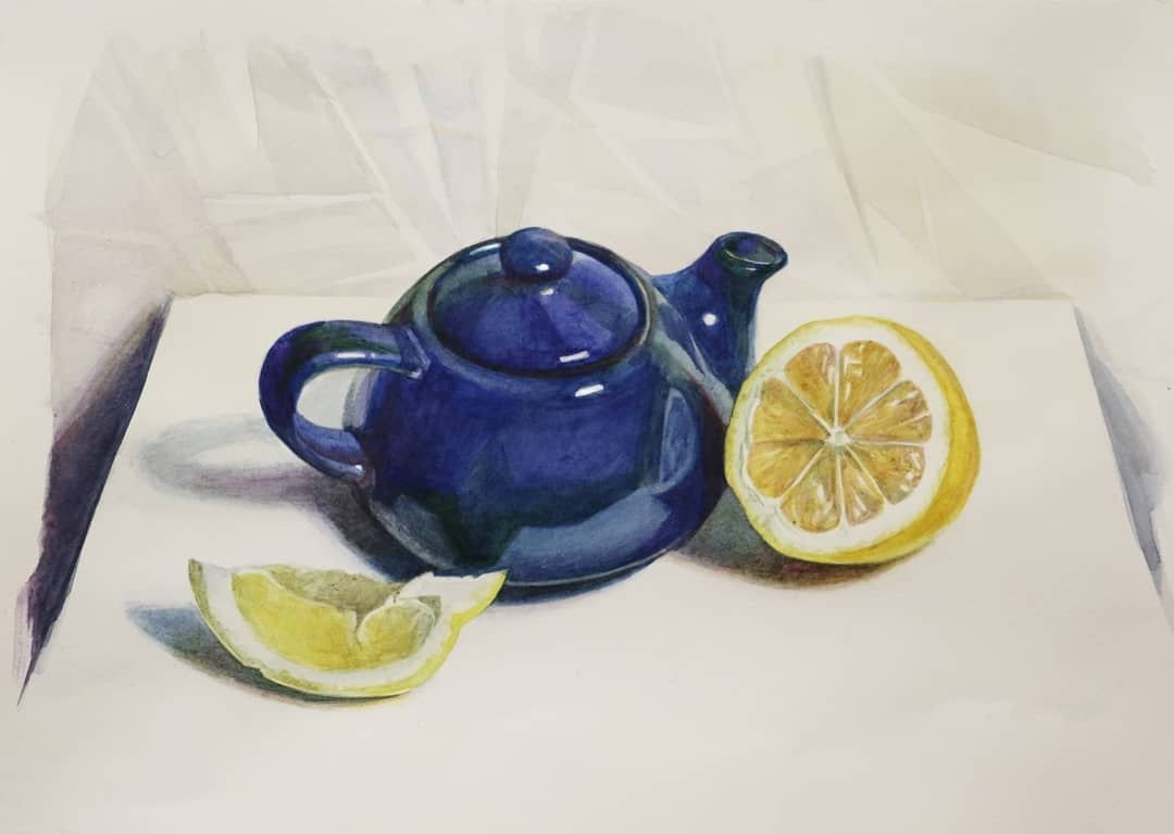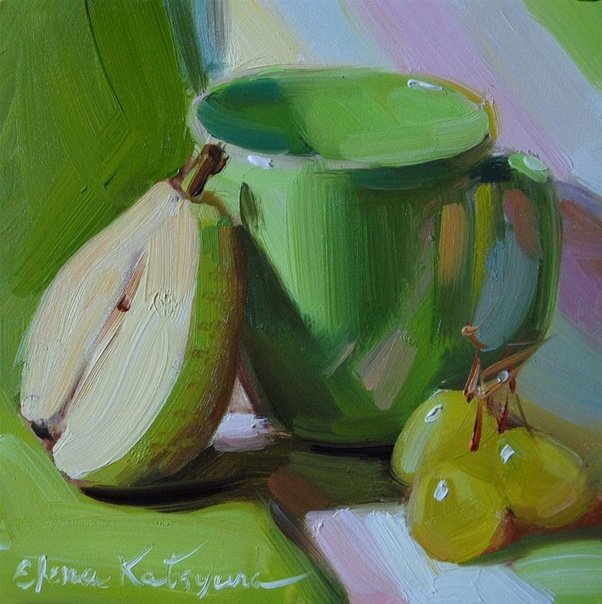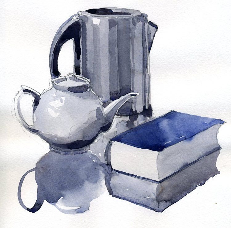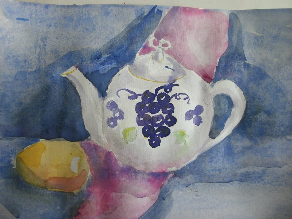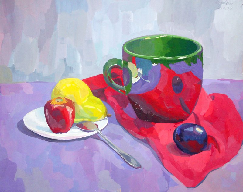 ![Гуашевая живопись натюрморт в холодной гамме]()