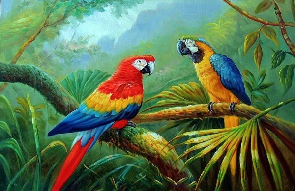 ![Тропические птицы живопись]()