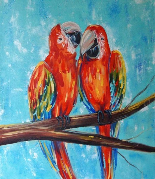 ![Попугаи на ветке живопись]()