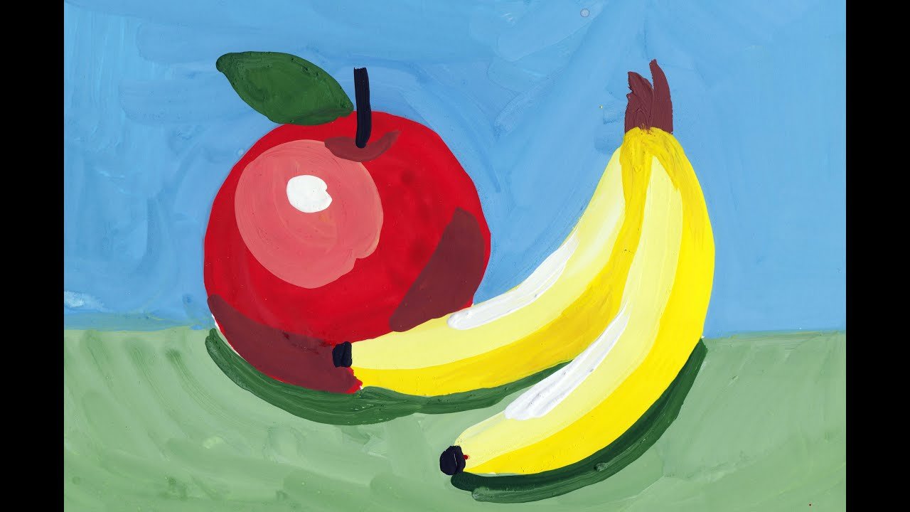 ![Фрукты красками для детей]()