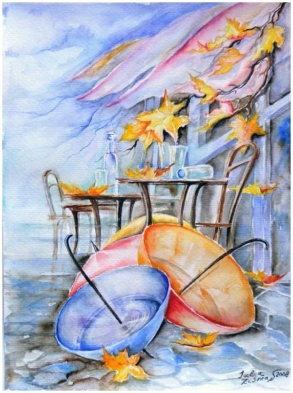 Дождливая осень акварелью
