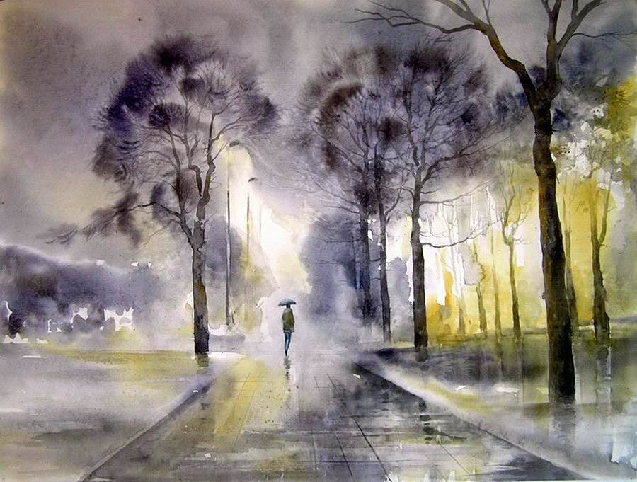 Дождливый день акварелью