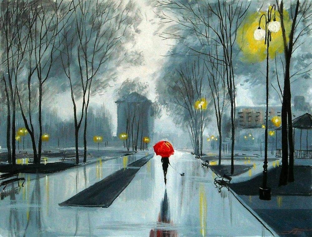 Красный зонт в живописи