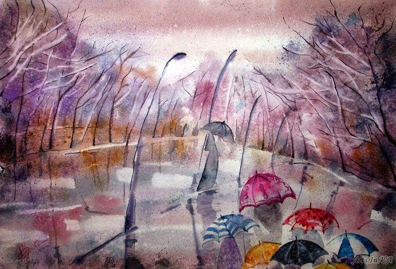 ![Осенний дождь акварель]()