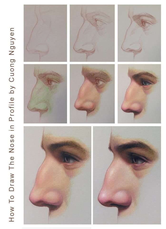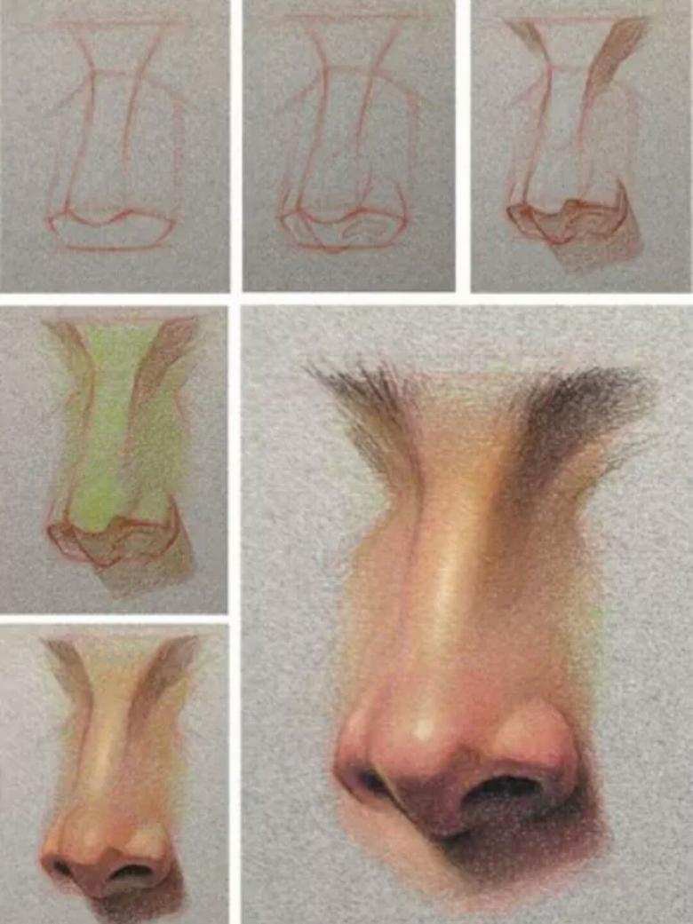 Нос рисунок цветным карандашом