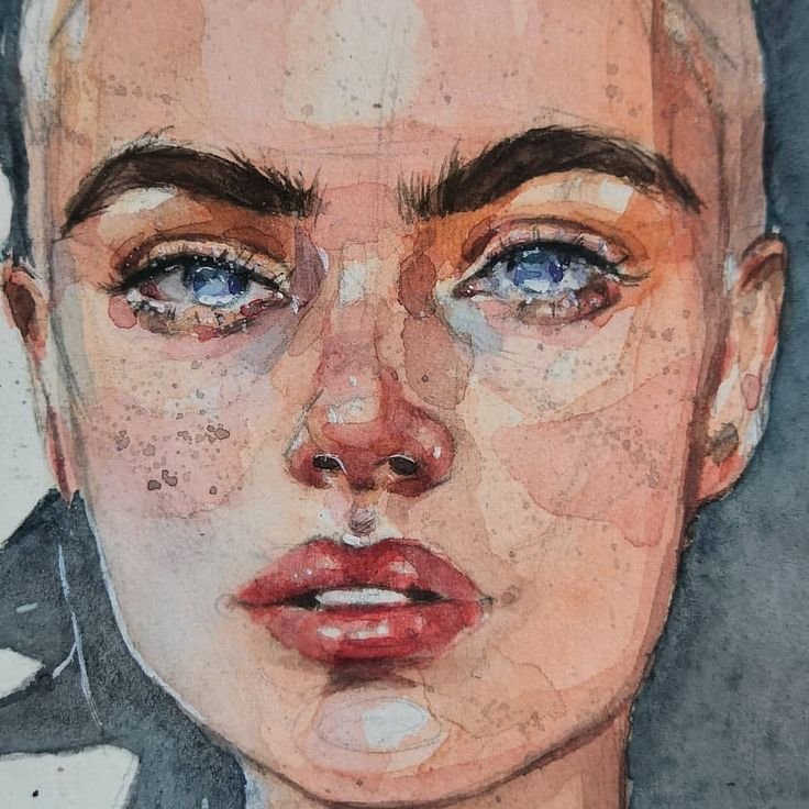 ![Лицо человека акварелью]()