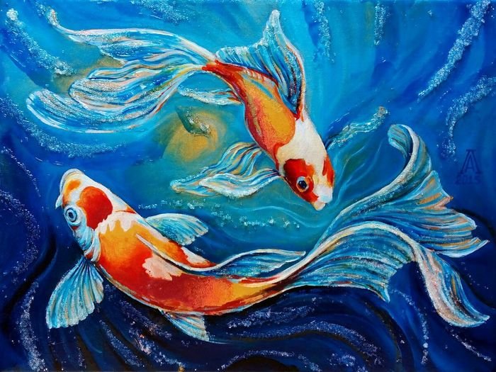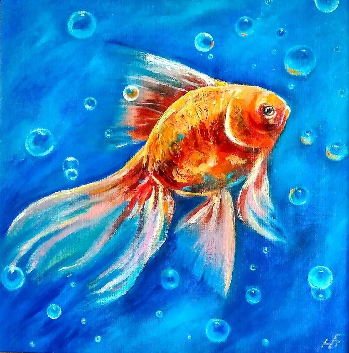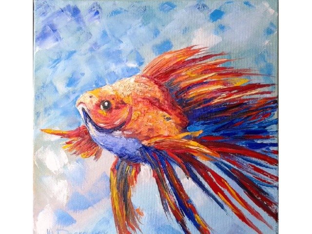 Золотая рыбка – величественное и загадочное создание, олицетворение желаний и удачи. Ее изображение на холсте, выполненное с использованием гуаши, привлекает внимание своей яркостью и красотой. Каждая капля золотого красителя на покрытии создает впечатление блеска и магии, словно рыбка оживает и начинает плавать внутри нежного аквариума. Пронизывающий взгляд золотой рыбки приковывает взгляд зрителя, перенося его в мир фантазий и мечтаний. Это произведение искусства станет прекрасным украшением интерьера и напоминанием о важности следовать своим мечтам, надеяться и верить в чудеса.