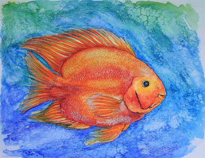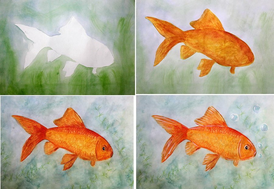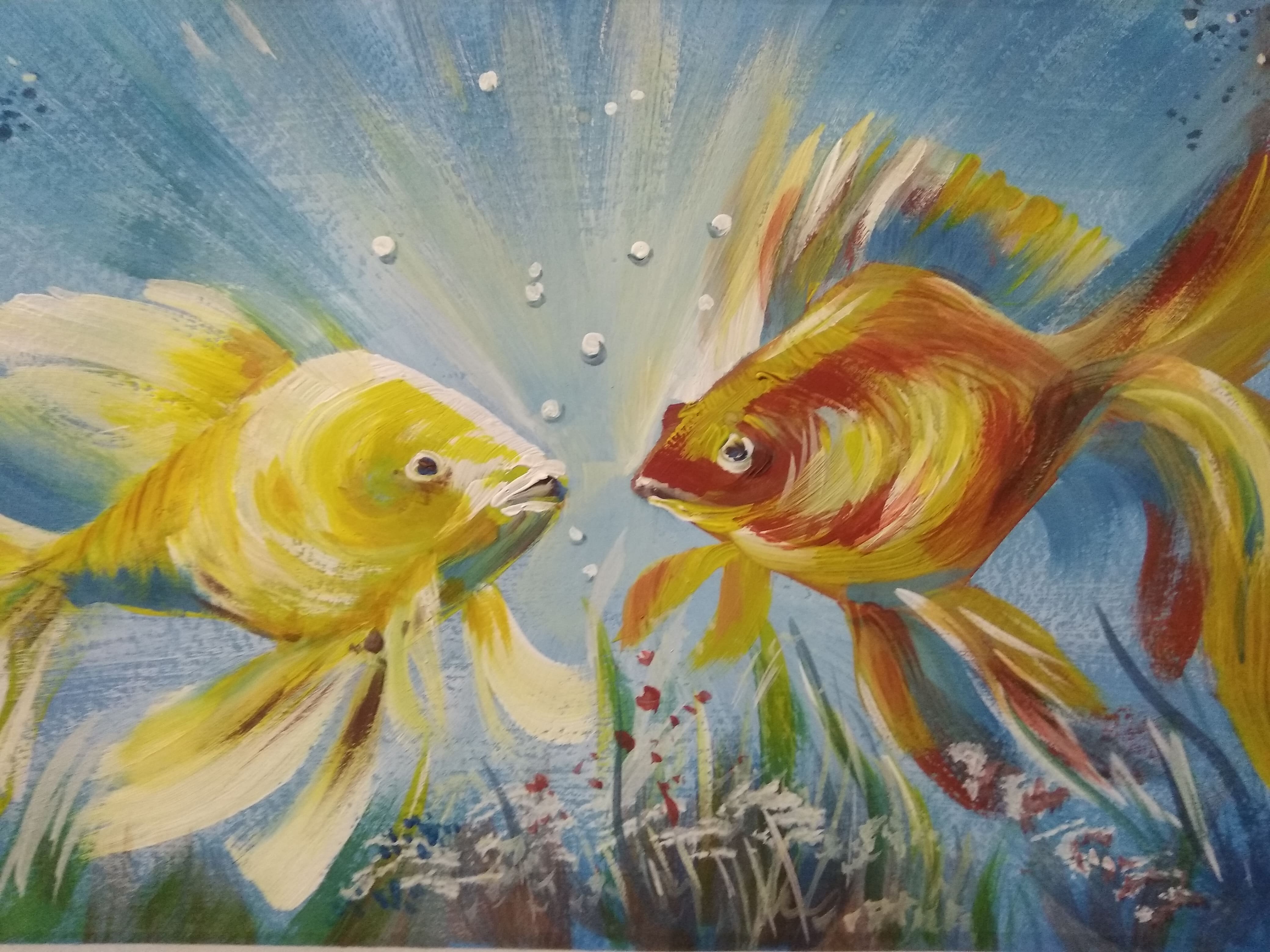 ![Рисунок Золотая рыбка гуашью 10 класс]()