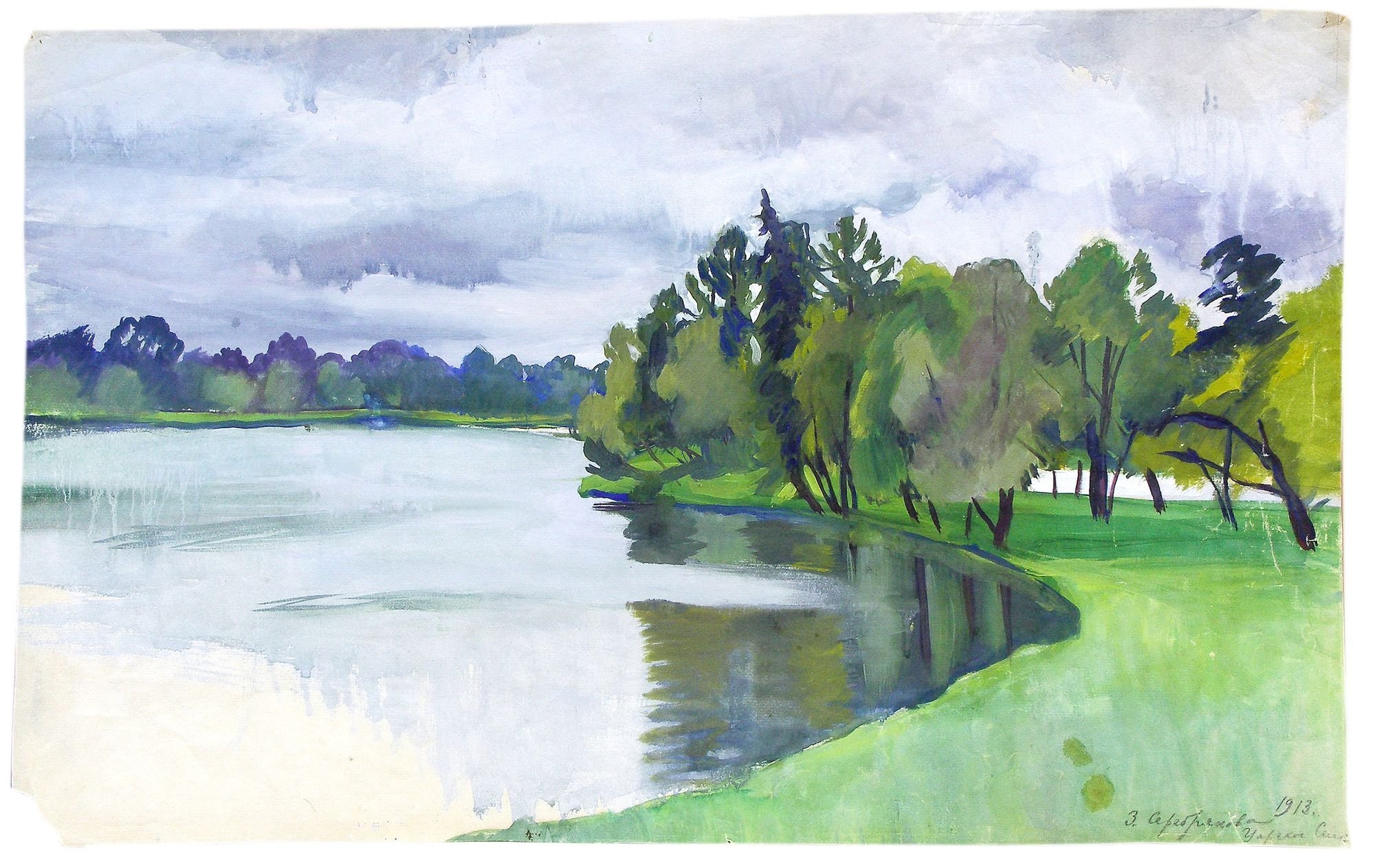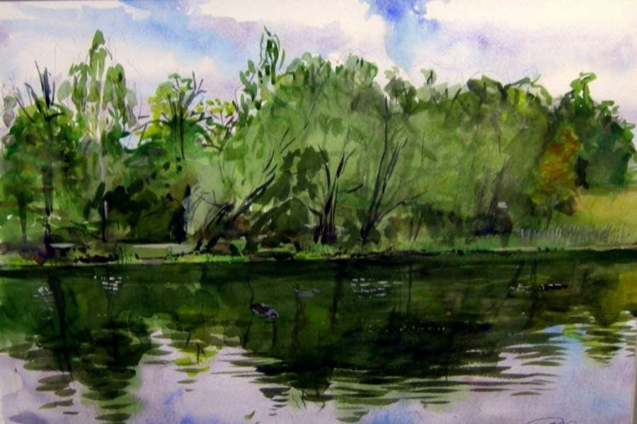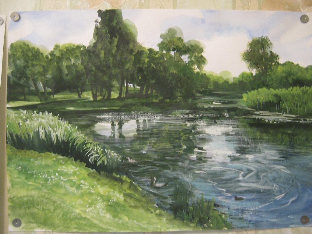 ![Пруд гуашью]()