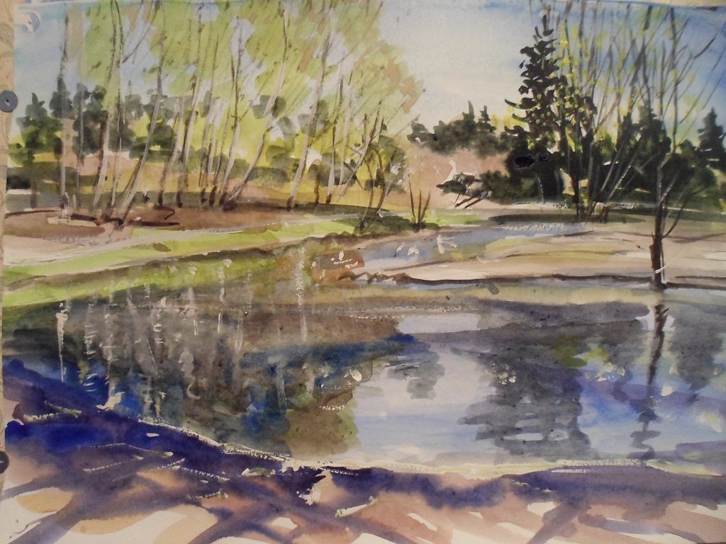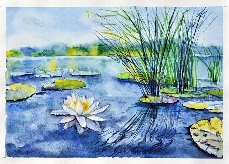 ![Этюд озеро акварелью]()