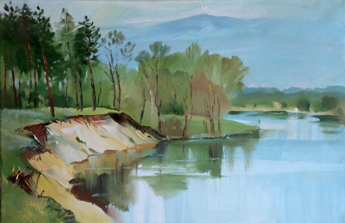 ![Речной пейзаж акварелью]()
