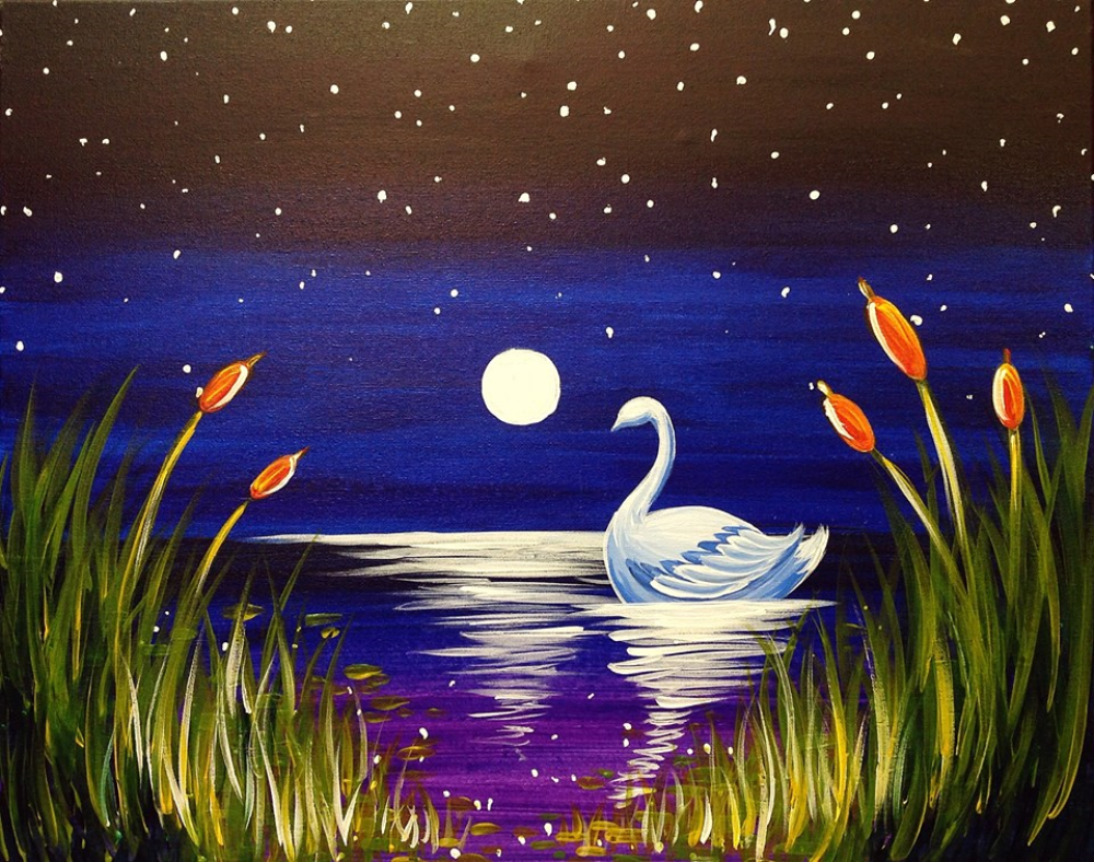 Рисуем озеро с камышами красками
