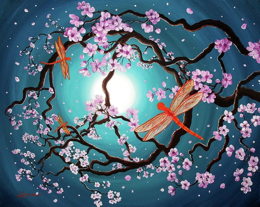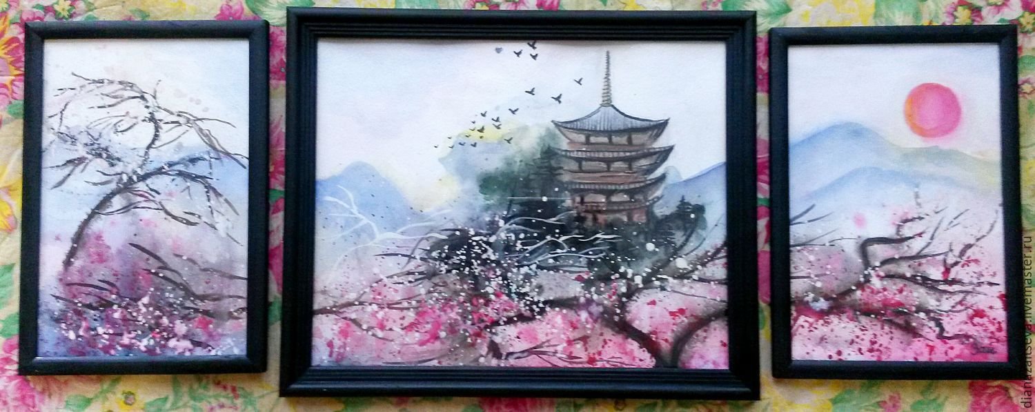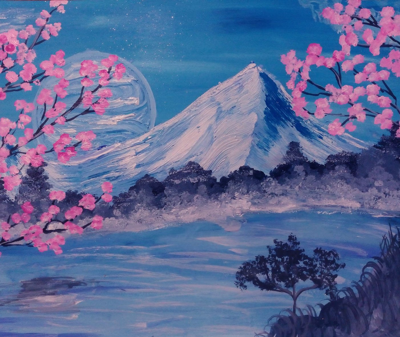 ![Горы в Японии Фудзияма и Сакура картина маслом]()