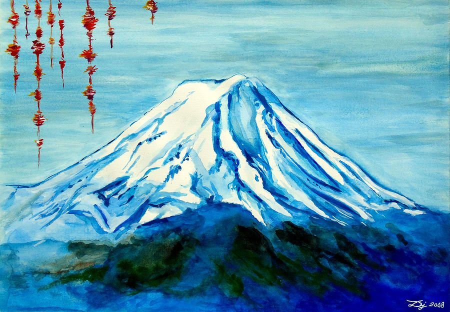![Японская традиционная Суми-э живопись. Гора Фудзи, Сакура]()