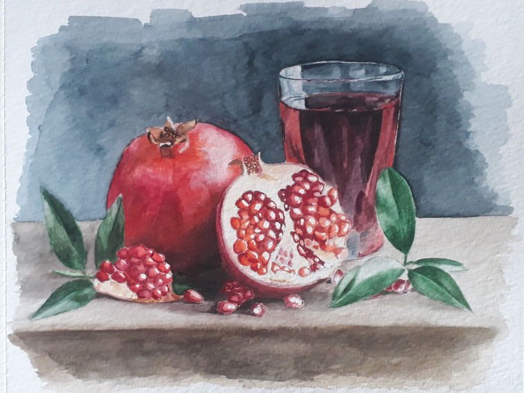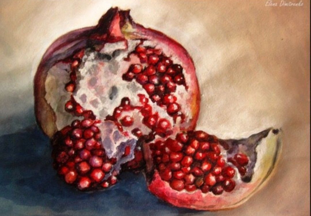 ![Натюрморт с гранатом акварель]()