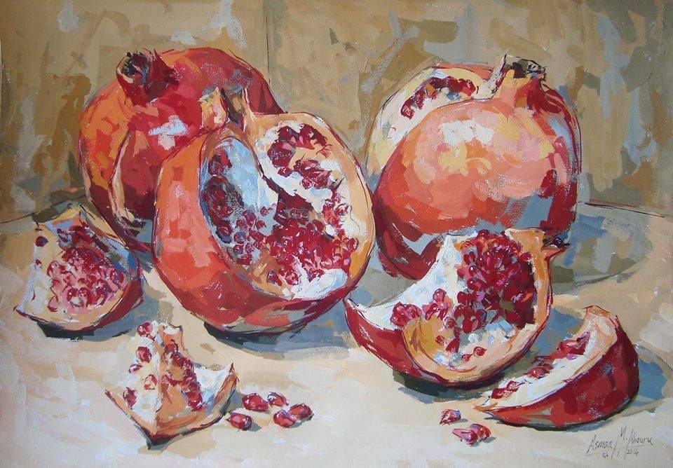 ![Гранаты фрукты живопись]()