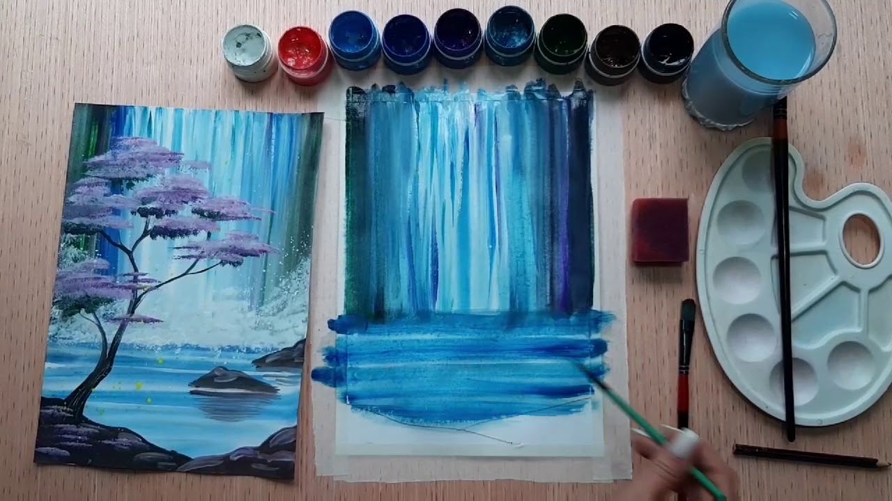 Водопад гуашью для начинающих