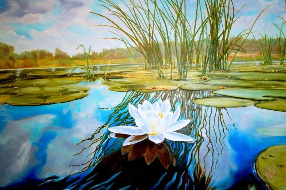 ![Художник Олег Тимошин картины пруд с кувшинками]()